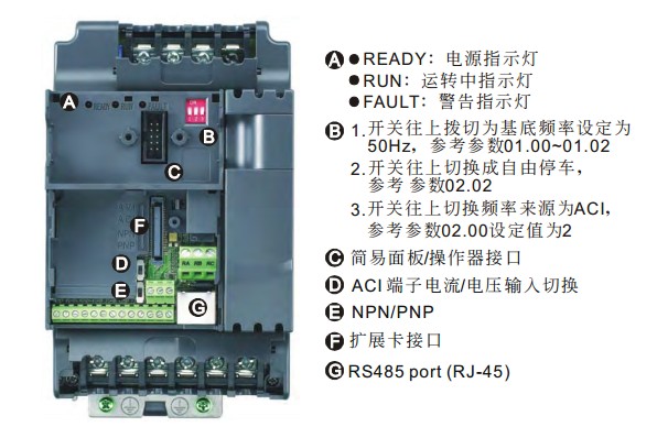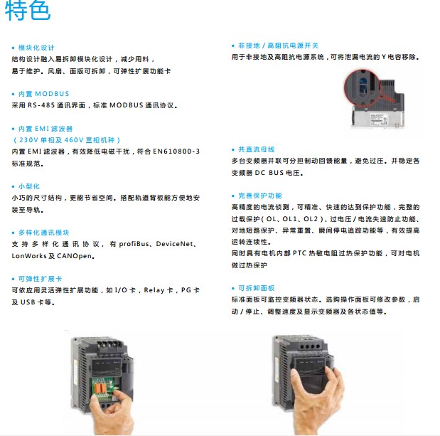 VFD-E VFD007E43C 3P460V,750W,IP20,内置CanoPen通讯接口、EMI滤波器