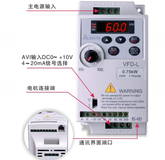 VFD-L VFD007L21A 750W,1P230V,标准机