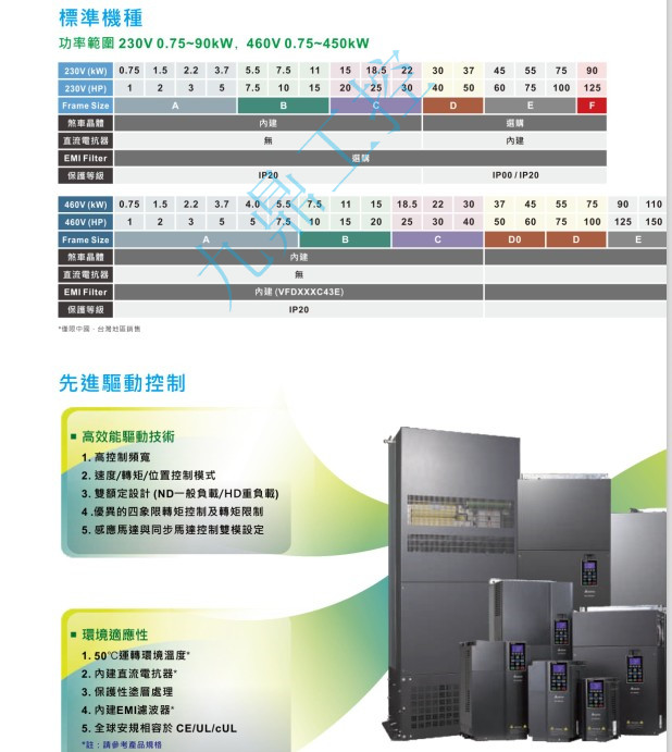 VFD-CH VFD450CH23A-00 220V/3P,45kW,内置10k PLC,刹车选购,DC电抗内建, UL,CE,IP00,UL OPEN TYPE